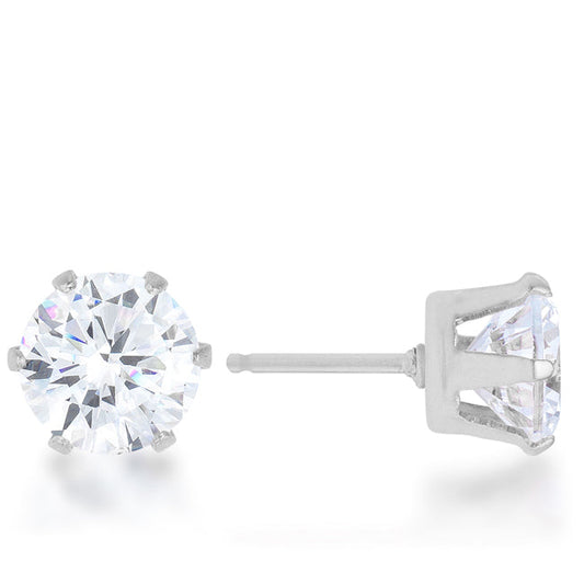 Reign 3.4ct CZ Rhodium Stainless Steel Stud Earrings