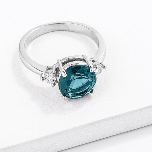 Rose Gold Plated Teal Three Stone Engagement Ring