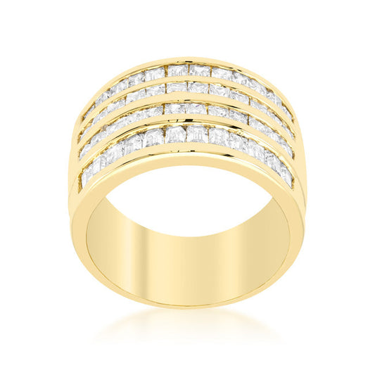 4 Row Gold Cubic Zirconia Cocktail Ring
