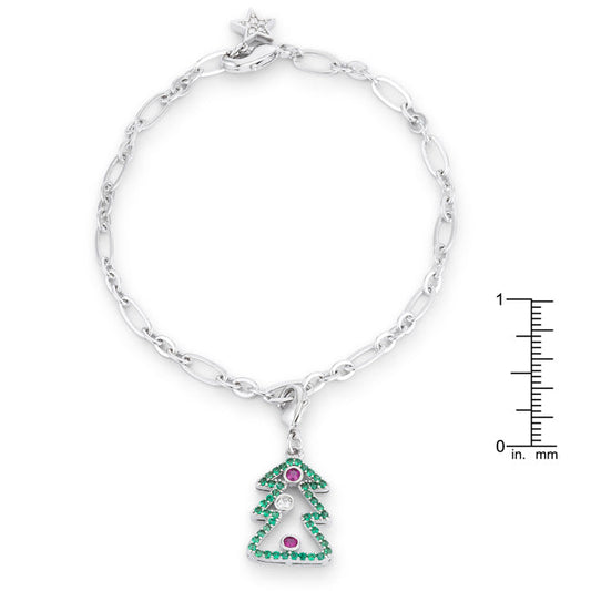 Christmas Tree 0.35ct CZ Rhodium Holiday Charm Bracelet