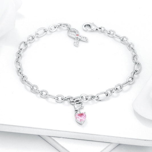 Breast Cancer Awareness Ribbon and Heart Charm Bracelet