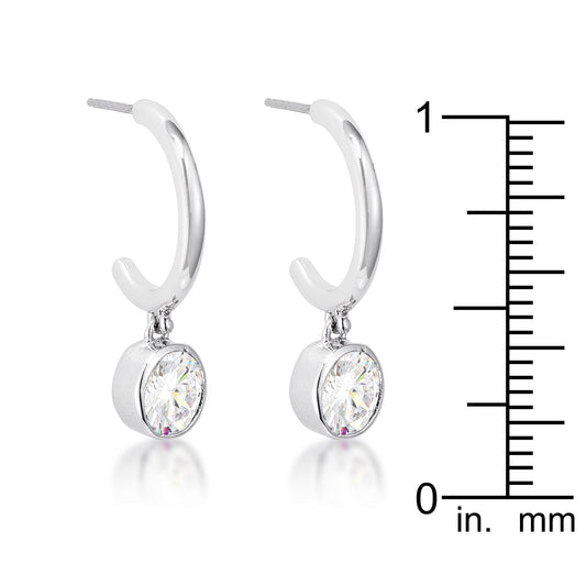 7mm Cz Rhodium Plated Drop Hooplet Earrings