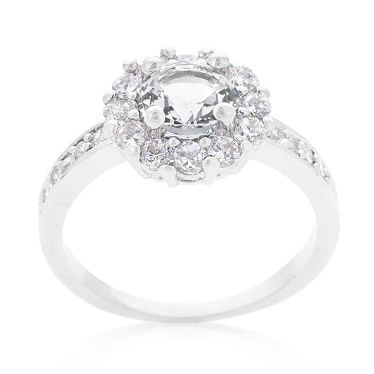 1.4Ct Contemporary Dainty Rhodium Plated Clear CZ Engagement Ring