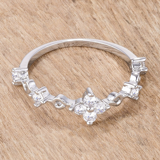 .24Ct Rhodium Plated Clear CZ Mini Floral Half Eternity Stackable Band